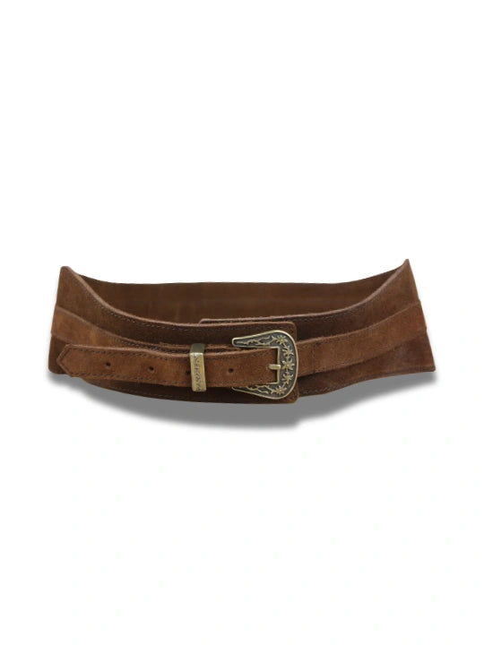 Fajín Curvo de Ante con Bandas y Hebilla Labrada - CJ5022